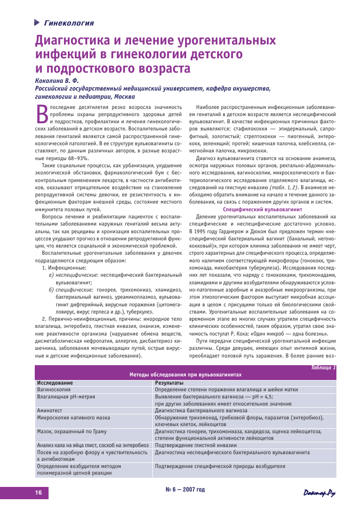 Общие подходы к установлению диагноза урогенитальных заболеваний